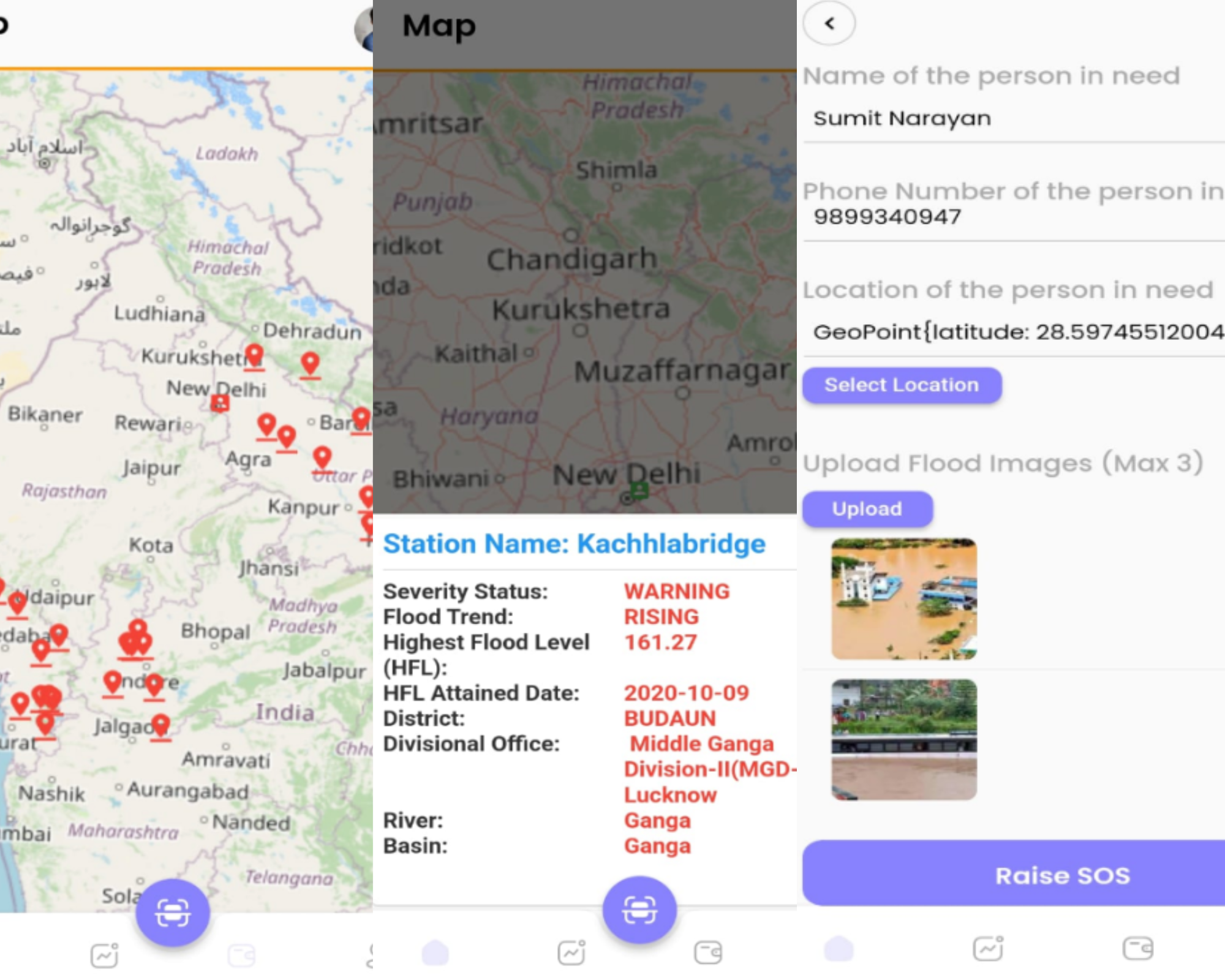 An app developed to monitor, predict floods in India and inform the authorities and locals about the same.